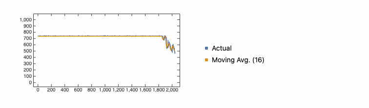 ], SwatchLegend[{(*VB[*)(RGBColor[0.368417, 0.506779, 0.709798])(*,*)(*"1:eJxTTMoPSmNiYGAo5gUSYZmp5S6pyflFiSX5RcEsQBHn4PCQNGaQPAeQCHJ3cs7PyS8qKpg26anKlOv2RYbTXk7vMH9gX3S8ZYb3qm3P7AF5kRs6"*)(*]VB*), (*VB[*)(RGBColor[0.880722, 0.611041, 0.142051])(*,*)(*"1:eJxTTMoPSmNiYGAo5gUSYZmp5S6pyflFiSX5RcEsQBHn4PCQNGaQPAeQCHJ3cs7PyS8q8jkS/fy+3hv7on/VH24t7X1sX7R51jr1XXqH7AGSkRxD"*)(*]VB*)}, {"Actual", "Moving Avg. (16)"}]]
