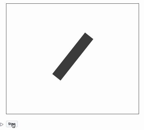 next = InputButton["Stop"]As an example we rotate infinitely a rectangle: