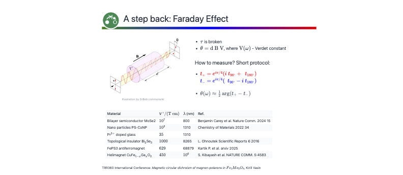 | Material | V ${}^\\circ/(\\textrm{T}~\\textrm{cm})$ | $\\lambda$ (nm) | Ref. |