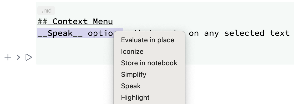 Speak options, that works on any selected text and calls Speak[]